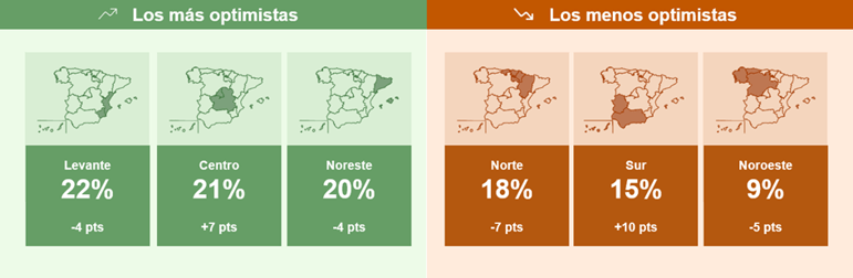 • El Norte es la zona que más baja (7 puntos menos) y el Sur es la que más sube (10 puntos más) respecto al trimestre anterior